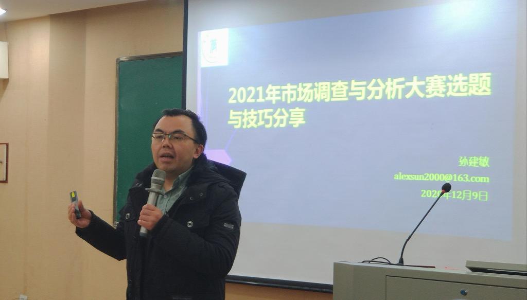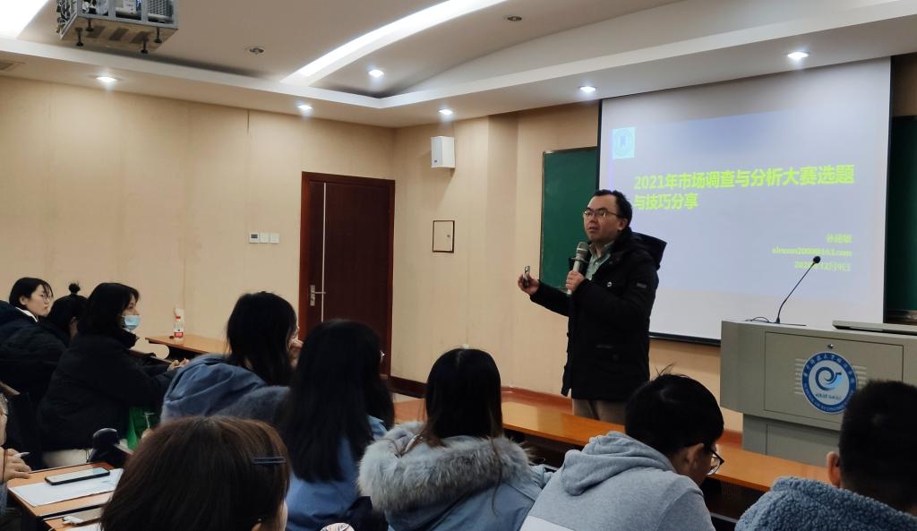 活动开始,3044永利集团团委书记郭宁介绍了本次活动主讲人孙建敏老师,孙建敏老师是2010年至2020年全国市场调查与分析大赛金牌指导教师,长期担任《社会科学与管理》等杂志审稿人职务。本次活动中,孙建敏老师主要向参会人员分享了历年大赛试题和赛制调整,进一步提高参赛人员对赛事活动了解程度。随后,孙建敏老师分享了调研过程中的经验技巧,并从书面调研报告和调研结果展示两个方面,强调了规范性的要求。