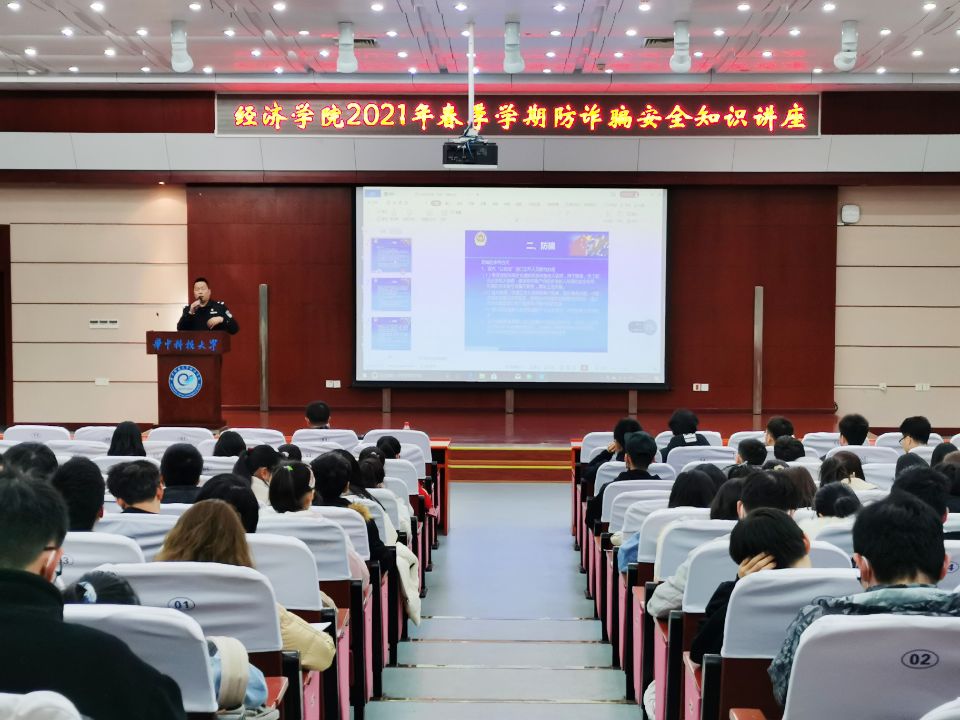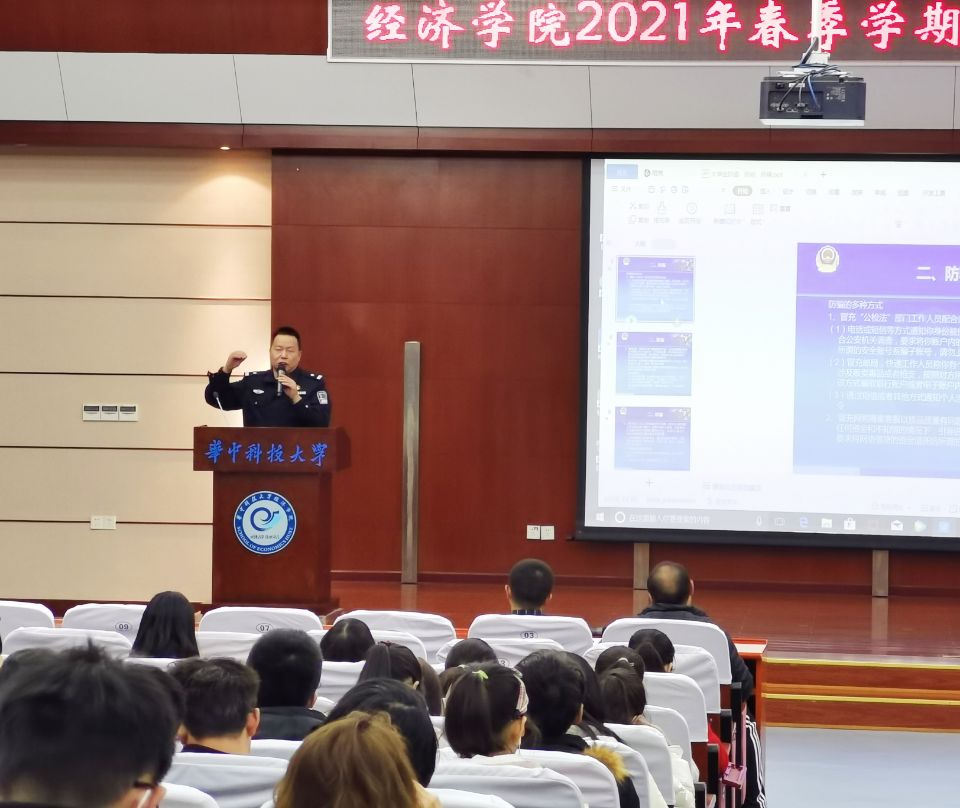本网讯 (通讯员 王柯雅)为加强广大同学安全意识,提高同学防诈骗能力,3月11日下午,公司于报告厅举行了防诈骗安全知识讲座,此次讲座专门请到了洪山区公安部门的熊家伟熊警官为同学们讲解防诈骗知识,参与人数达三百余人。