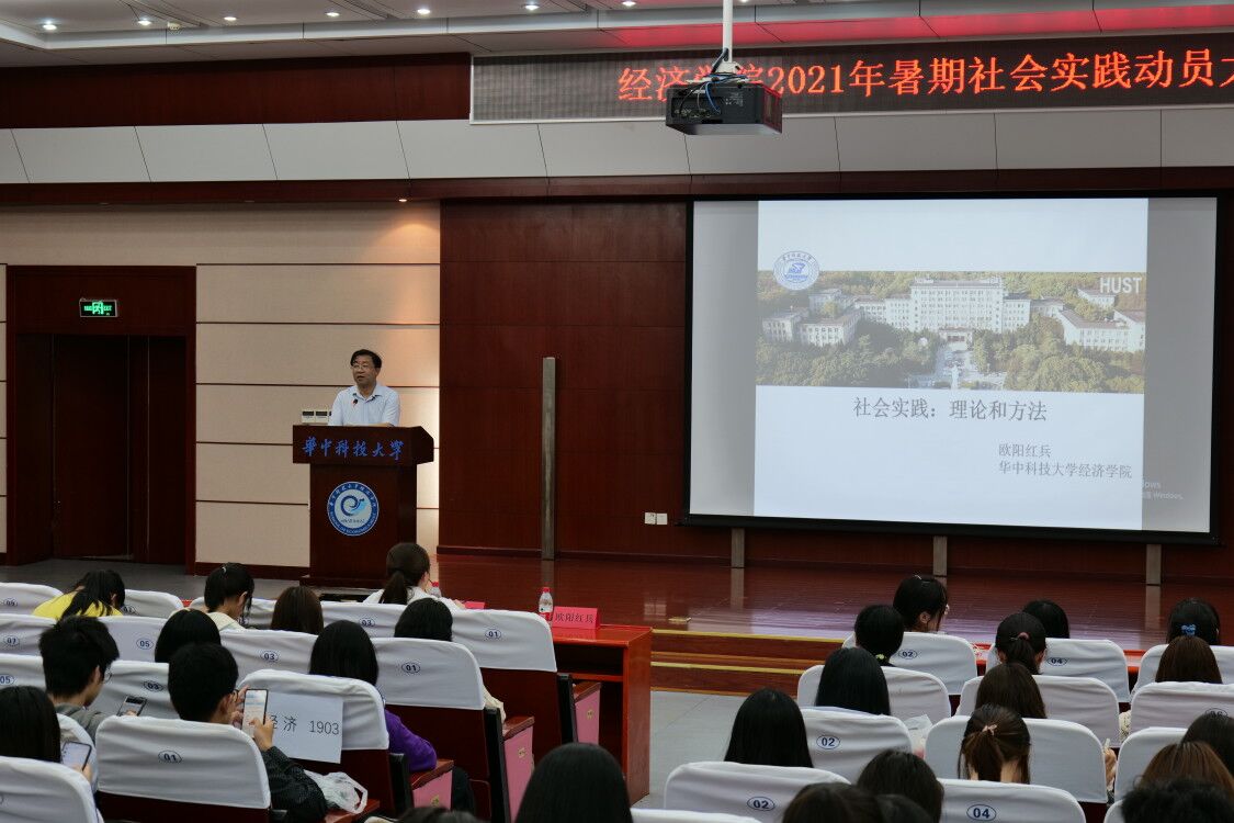 在优秀成果展示环节,欧阳红兵教授向到场的同学分享了往年暑期社会实践的优秀成果,并在现场对课题进行了思路的讲解和分析,在互动中,征集同学对实践主题的可行方案,为同学们开展社会实践活动提供了范本和具体的研究思路。
