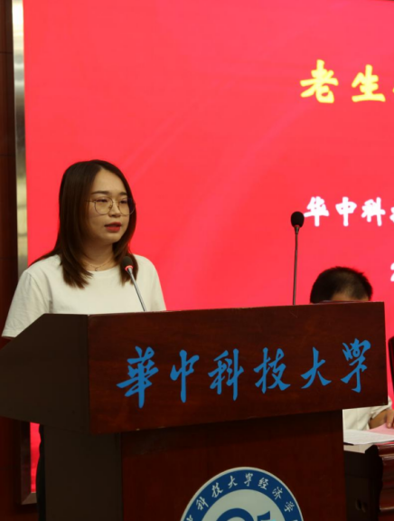 老生代表姜梦婷和新生代表何沐依次上台发言。姜梦婷同学从善于学习,勤于实践,敢于担当三个方面谈了心得体会。何沐同学则围绕“明德厚学 经世济民”的院训精神,谈了同学们努力的方向。