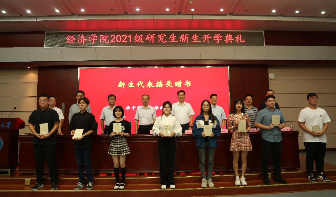在随后的赠书环节,新生代表依次上台接受张培刚先生著作《农业与工业化》。公司借此希望同学们继承老一辈经济学人优良传统,勇于承担青年经济学人的时代重任。