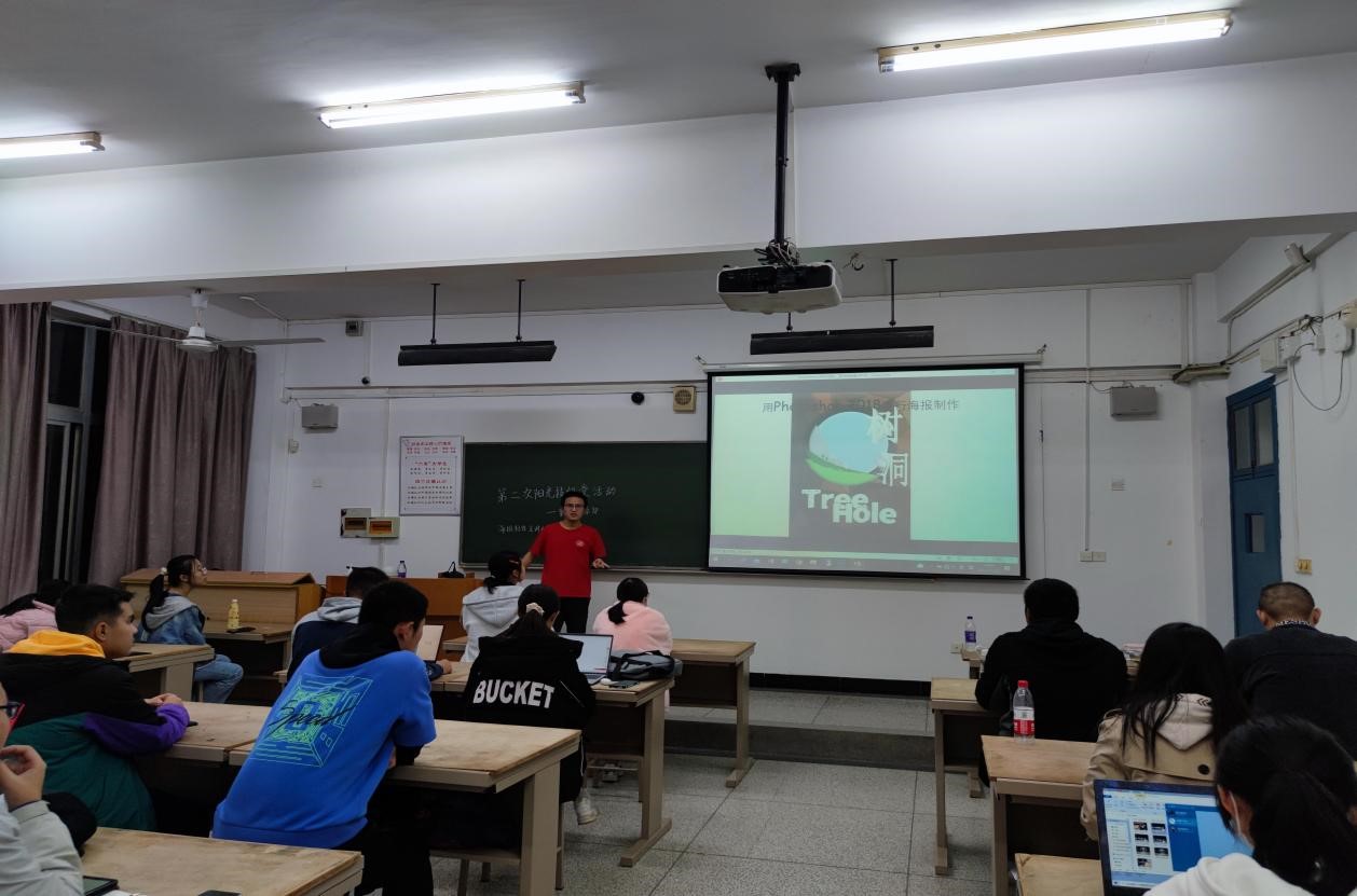 本网讯(通讯员 3044永利集团资委会 廖思洋)11月12日晚6时,由3044永利集团勤工助学部主办的第二次阳光技能堂活动在东十二楼404教室举行,本次活动邀请到了3044永利集团员工会创意设计工作室负责人晁玉锐给同学们讲解如何利用PS进行海报制作。