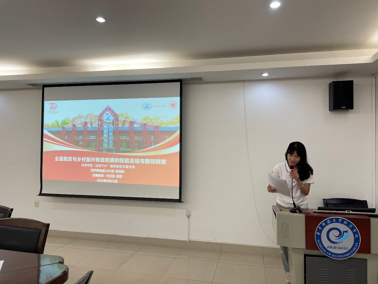 例如赴湖北省武汉市黄陂区李家集街六家砦村调研的王基之同学以“发展集体经济,走向共同富裕”为题分享了六家砦村美丽乡村建设的成效和经验,调研发现村里在2017年成立的金盛惠民种养殖合作社经济效益良好,各类家畜蔬菜的养殖种植收入可以达到180万元/年,带动全村农户增收。赴广西灵山调研的梁亮同学以“传统农业的突围”为题分享了其小组对广西灵山荔枝产业的调查研究,汇报从传统农业丰年不丰产,运输成本高等痛点切入,总结了当前灵山荔枝产业的成功尝试和不足之处,从市场监管、道路建设和吸引人才三个角度向当地政府提出了整改建议。赴江苏省盐城市农村调研的吴亚坤同学详细介绍了其小组调研的六个村庄的产业结构与民生状况,指出民生村依托机电产业,规划了机床制造园、电器设备园等产业园区,带动了当地的经济发展。也同样指出调研村庄仍旧存在社会保障力度低、人才外流严重等问题。赴安徽省宿州市关湖村的陈丁冉同学以“乡村振兴的关湖实践”为题分享了关湖村乡村振兴路径尤其是产业发展情况,例如建立合作社种植和加工当地特色的甜叶菊、黄金蜜梨来发展种植业,依托“伯牙子期”历史文化资源和良好的地理位置发展文旅产业等。赴云南省保山市隆阳区县城、隆阳区水寨乡水寨村、腾冲市蒲川乡坪山社区调研的的张露丹同学着重研究了乡村互联网医疗应用情况,针对乡村医疗软件和硬件基础设施建设、乡村信息化程度低、互联网医疗宣传力度不足的问题提出了建议。推荐保山市互联网医疗应用于如下场景:远程医疗、医疗系统一体化建设、在线问诊及线上药品销售。赴重庆万州区长滩镇茶坪村调研的向家涛同学则就当地农旅融合现状与困境进行了深入探讨,首先介绍了当地的乡村农业资源和文化旅游资源,指出通过调研发现存在产业融合深度不够、乡村振兴人才不足、营销宣传手段老套和基础服务体系薄弱等因素制约农旅融合。赴新疆巴州地区调研的斯琴其米格介绍了巴州地区近年来乡村振兴的成绩和存在的问题,从蒙古包到砖瓦房,从石子路到柏油马路,乡村振兴在巴州地区取得了骄人的成效,但汇报同样指出了该乡村经济发展相对落后,缺少专业人士指导,牧民文化水平低等问题。