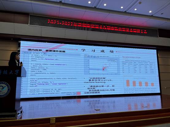 会议伊始,主持人宣读《国奖、国励评选政策》、《参评人资格审查报告》,并介绍本次大会的评选流程。随后,国家奖学金、国家励志奖学金评选正式开始,国奖候选人罗嘉韵、章嘉骏、苏堃、王雨柔、张陈玥、汤何敏、徐昂、叶宇豪,国励候选人王琪、黄令姝、王雨柔、邢瑞彤、冉涛豪、吴梦琳、宋晓缘依次上台进行答辩。