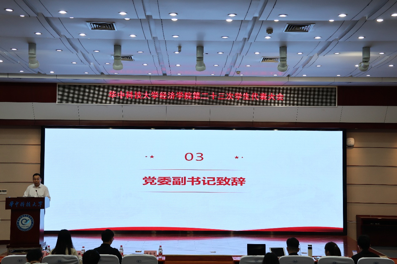 大会伊始,全体与会人员起立奏唱国歌。随后,公司党委副书记崔金涛老师致辞。他表示,院员工会全体成员以校训明德厚学、求是创新为指导,勇于改革、锐意进取,取得了一系列丰富的成果。展望未来,希望以此次大会为契机,员工会继续立足立德树人的根本任务,增强员工会组织的政治性、先进性和群众性,不断开创各项工作新局面。最后,崔金涛老师寄语各位同学,在公司这样一个小课堂以及社会这个大课堂中,能够做到求真学问、练真本领,培养锲而不舍、自强不息的奋斗精神,珍惜韶华,脚踏实地,在中华大地上写好经济学这篇大文章,讲好中国故事,贡献中国方案。