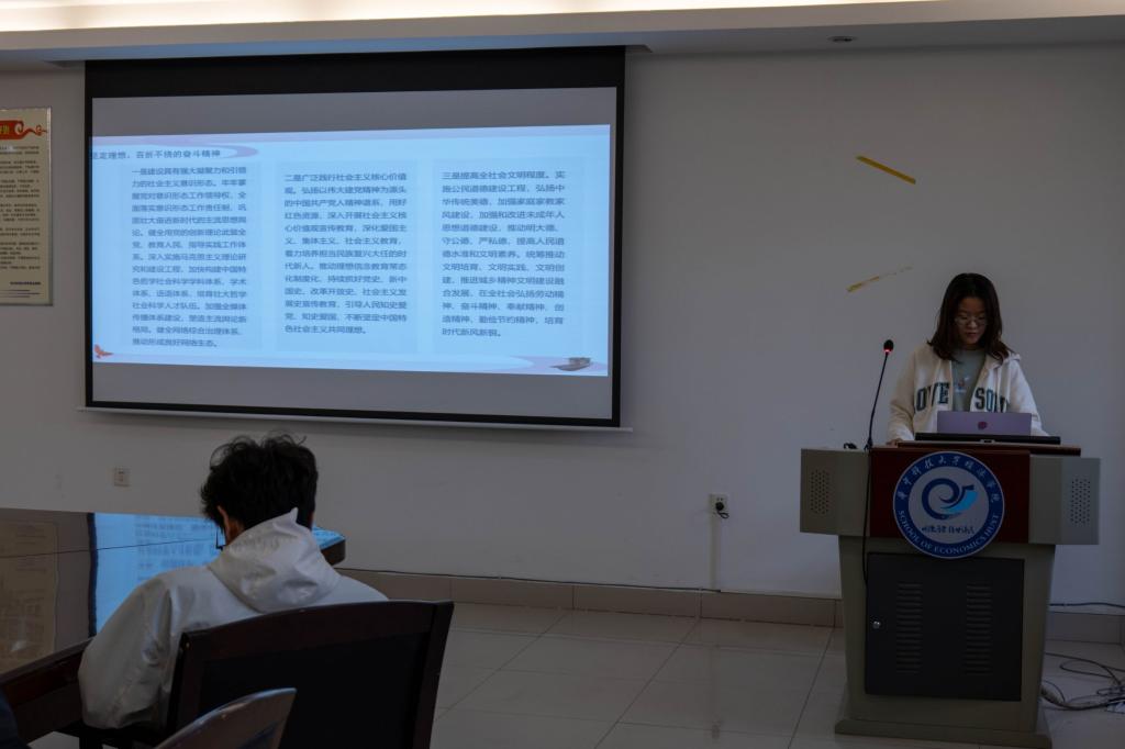 本网讯(通讯员:张雪 摄影:蔡卓圻)2022年11月23日下午14点30,经济学类3班在公司402会议室开展了“领悟党二十大精神,学习宪法安全知识”主题班会。本次班会旨在带领同学们进一步学习和领悟党的二十大精神,加强对宪法知识的认识和理解。班会由学习委员肖钰枫和组织委员张诗妍主持,分为研讨二十大报告和宣讲宪法知识两个部分。