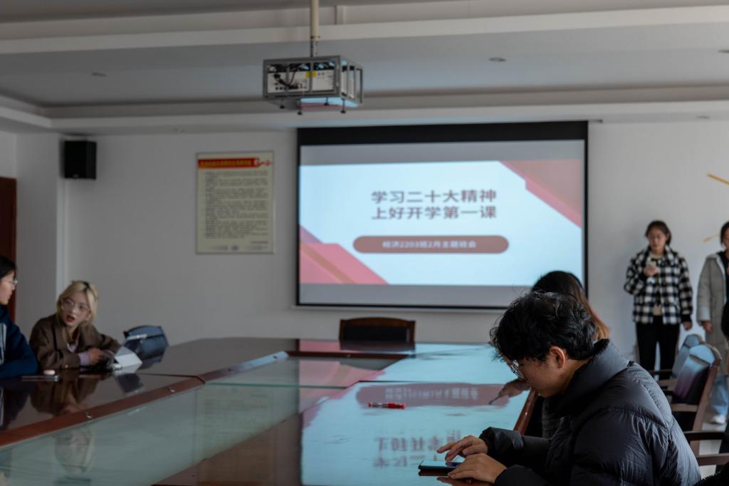 本网讯(通讯员:苏静怡摄影:蔡卓圻)2023年2月26日上午10点整,经济学类2203班在公司402会议室开展了“学好二十大精神,上好开学第一课”主题班会。本次班会旨在带领同学们进一步学习贯彻党的二十大精神,打好新学期的思想基础。班会由班长张雪和学习委员郑涵月主持,分为员工代表发言,班主任讲话及总结三个部分。