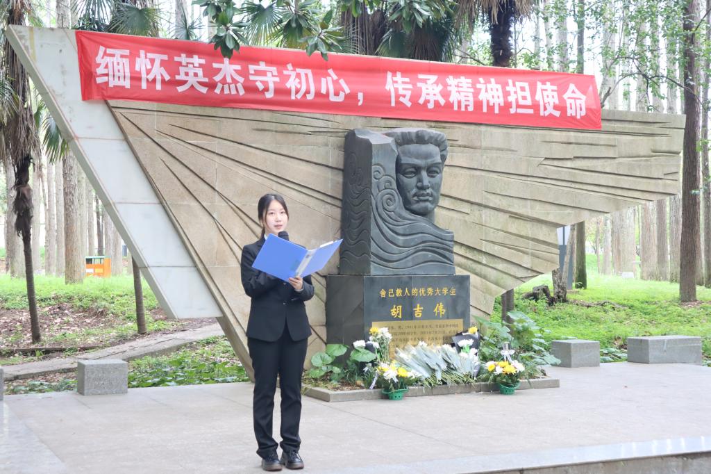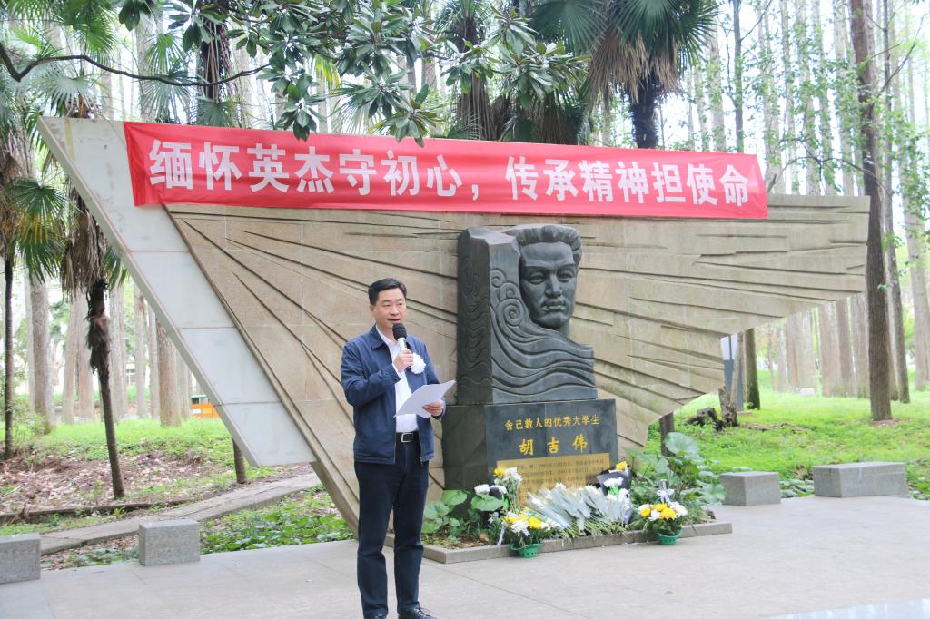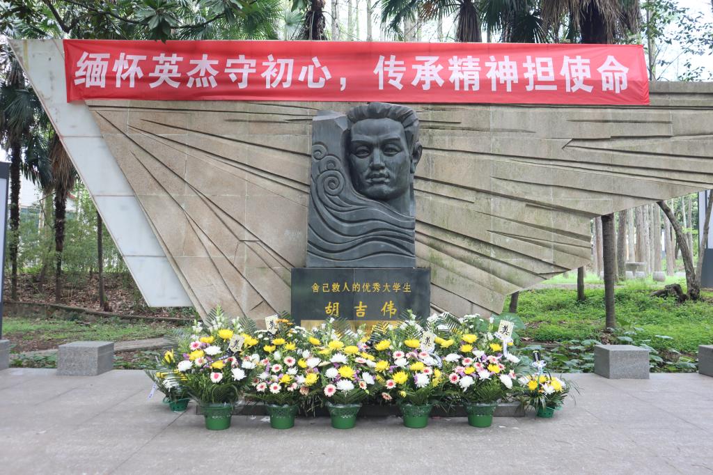 祭扫活动由公司党委书记戴则健老师主持,活动第一项,全体与会成员向英雄胡吉伟塑像默哀一分钟,以表达对胡吉伟同学深深的追思。