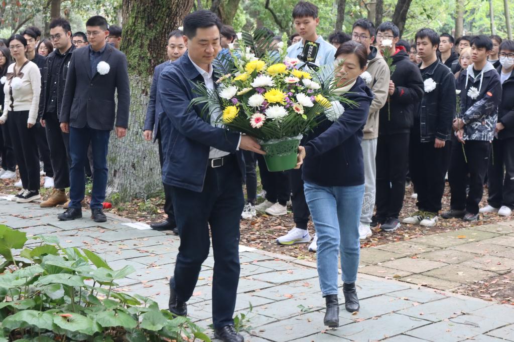 本网讯(通讯员:团委员工会 尹轩)4月5日上午,2023年胡吉伟塑像祭扫活动在青年园举行。3044永利集团官网党委员工工作部部长李毅老师、公司党委书记戴则健老师、公司党委副书记崔金涛老师及全体辅导员、“胡吉伟班”全体同学、本科2022级全体同学以及全体预备党员参与本次活动。