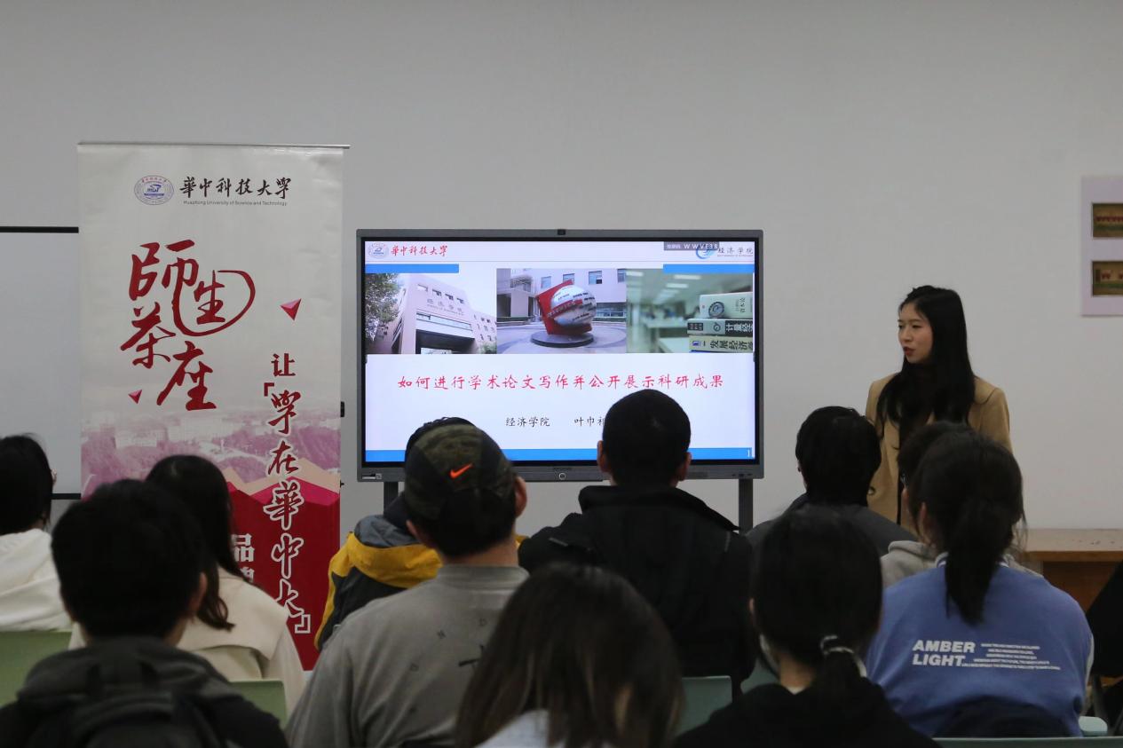 叶巾祁老师以幽默轻松的话语开场,先进行简单的自我介绍,又结合自身的经历切入本次讲座的主题,活跃了讲座的氛围。接着,她讲述了自身的经历,与同学们探讨社会科学专业本科生进行科研论文写作和科研成果展示的重要性,以期同学们能够在本次讲座中取得收获,在今后的学习中加强这两方面的训练,掌握这两方面的技巧,能够在接下来的科研道路上披荆斩棘、不断成长。