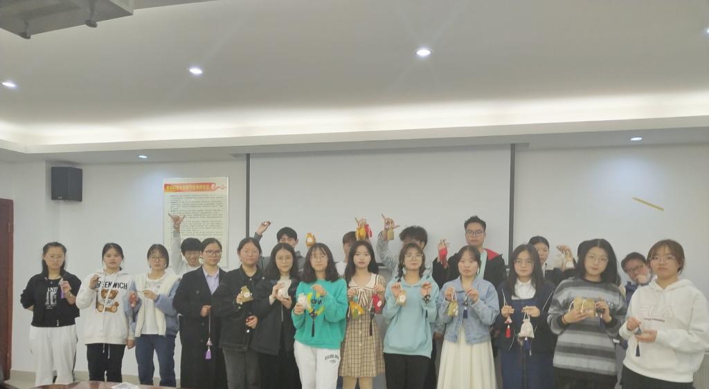 最后,几位同学上台展示自己制作的香囊,并发表自己对此次活动的感受。有的同学说“这次活动培养了我的耐心,也让我感受到中国古代人民伟大的智慧,希望能向古代人民学习”,也有的同学说“静下心来去做一件事情,专心致志,让大脑不去思考那么多事情,这样的感觉让人快乐。”同学们与自己制作的香囊合影留念。