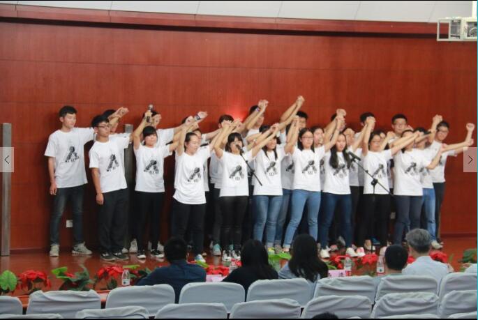 所有班级都已演唱完毕,2015级本科数学分析老师董锐为各班的表现做了点评。董老师说,平常我站在台上,现在你们站在台上,位置换过来了,看见你们团结一心老师很感动。当同学们听到自己钦慕的董老师为他们骄傲为他们喝彩的时候,内心的激动之情溢于言表,场下一篇欢呼。