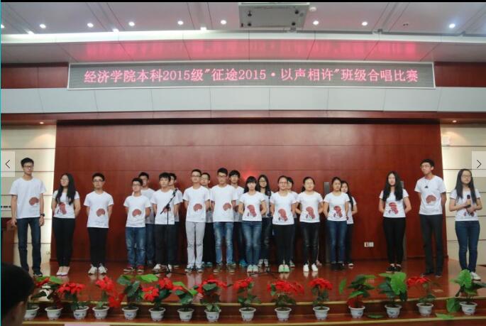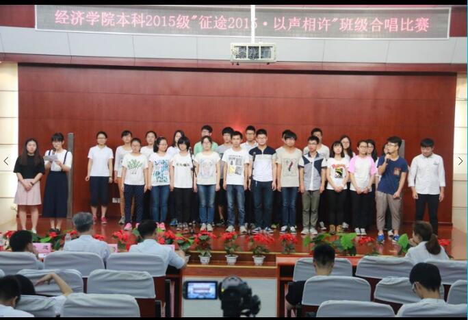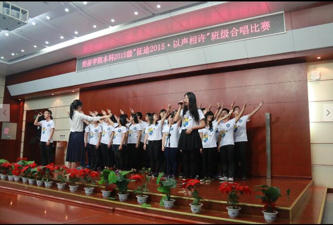 本网讯 (通讯员 沈盼)2016年5月5日晚,3044永利集团本科2015级“征途2015·以声相许”合唱大赛在3044永利集团报告厅拉开帷幕。到场嘉宾有国贸1501班教师班主任李昭华,金工1501班教师班主任杨进,国商1501班教师班主任王班班,经统1501班教师班主任徐锦,2015级本科数学分析老师董锐和本科2015级辅导员彭鹤翔。