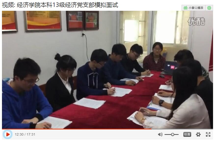 两学一做基础在学,关键在做,在特色党日活动的过程中,针对如何做合格党员方面,也开展了自己的特色活动。由于我们支部成员都是大三的员工,身边的很多同学也都面临就业的选择,本着党员来自群众、服务群众的宗旨,本支部决定从引领就业方面服务同学。我们从以下几个方面开展了我们的活动:首先,建立就业交流群,并在年级中推广,为打算就业的同学建立一个信息共享、经验交流的平台,此外,支部专门安排人手负责就业信息的收集,并定期在群里共享,对需要就业的同学起到了一定的帮助作用。此外,为了使同学们对于职业面试有一个直观的印象,支部特意拍摄了一期关于模拟面试的视频,模拟面试分为结构化面试与无领导小组讨论两个部分,在结构化面试的每一个问题里,都设计了两种回答,一种是一般的回答,一种是必胜版的回答,旨在帮助同学们在观看之后能够对比发现自己可能存在的问题,在将来的面试中更加得心应手,无领导小组讨论之后,我们策划了一个点评的过程,通过点评让观众更好的意识到面试中应该注意的问题,目前视频已在优酷上面发布。