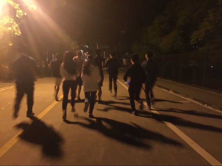 还未到活动开始的时间,参加夜跑的同学们便早已在集合地点集合完毕,每位同学在起点处领取了自己的装备,并有条不紊地戴好。同学们已整装待发,待工作人员讲完注意事项之后,开始了第一次夜跑。活动现场,色彩缤纷的荧光棒互相辉映,使前来参加夜跑的同学们成为黑夜中一道亮丽的风景线。在奔跑的过程中,同学们享受着在月色下远离网络,远离喧嚣的一刻,他们尽情地呼吸着清新的空气,任由汗水浸透衬衫,任由心跳急促跳动,来摆脱一天的疲惫。