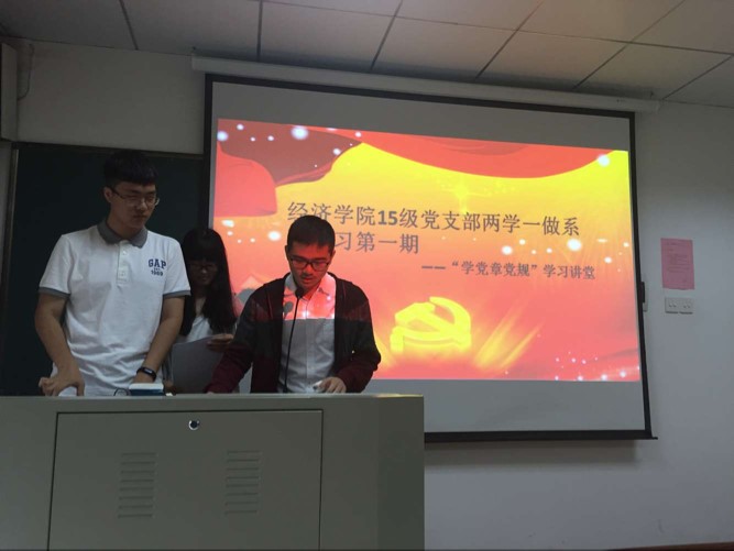 最后,本科2015级金融学1502班的赵立辉向大家讲解了党的一些党的知识,讲解了一些违反党章党规的一些反面例子,并给大家讲解了一些我们可以力所能及的积极向党组织靠拢的事情,规范自己的行为,积极学习党组织的最新内容,要坚定理想信念,练就过硬本领等,做到优秀党员。