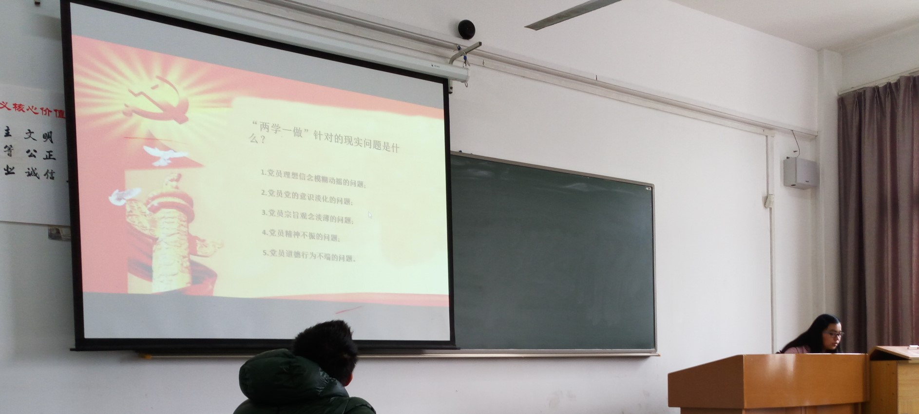 最后一项是帮助同学们深入学习,贯彻“两学一做”的党章学习小组的活动。李蕊同学围绕“‘两学一做’是什么”,谈到党的五个方面和党员要做到的“四讲四信”等,这个活动对班级中即将成为预备党员的同学意义重大,也提高了同学们对党的认识,同时,“两学一做”也是推动党内教育,从“关键少数”向广大党员拓展,从集中性教育向经常性教育延伸的重要举措。