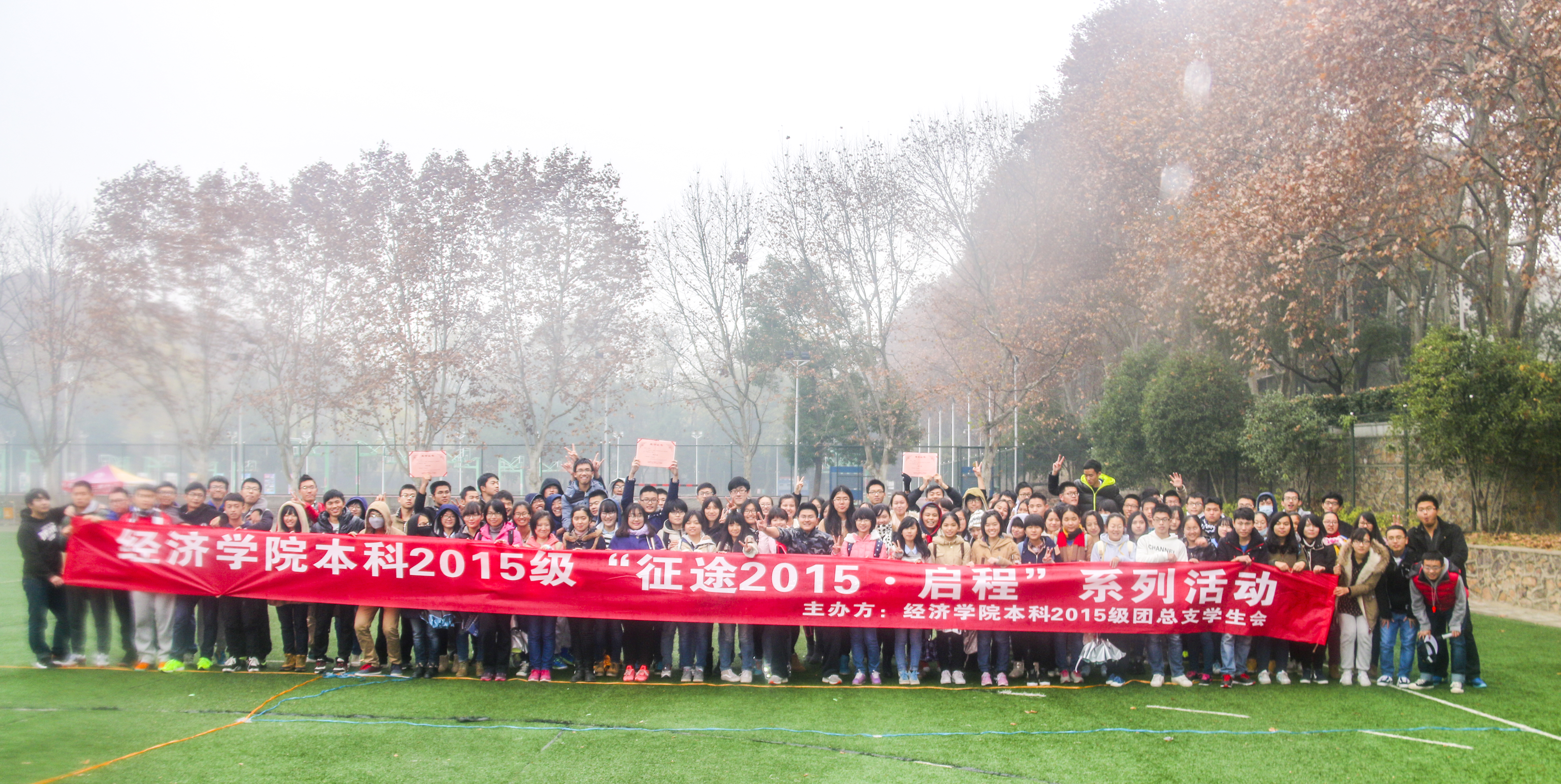 本网讯 (通讯员 沈盼)12月12日下午2时,3044永利集团本科2015级“征途2015·启程”系列活动第一站趣味运动会在中心操场如期举行,本科2015级全体员工和2015级辅导员彭鹤翔一起度过了愉快的下午。