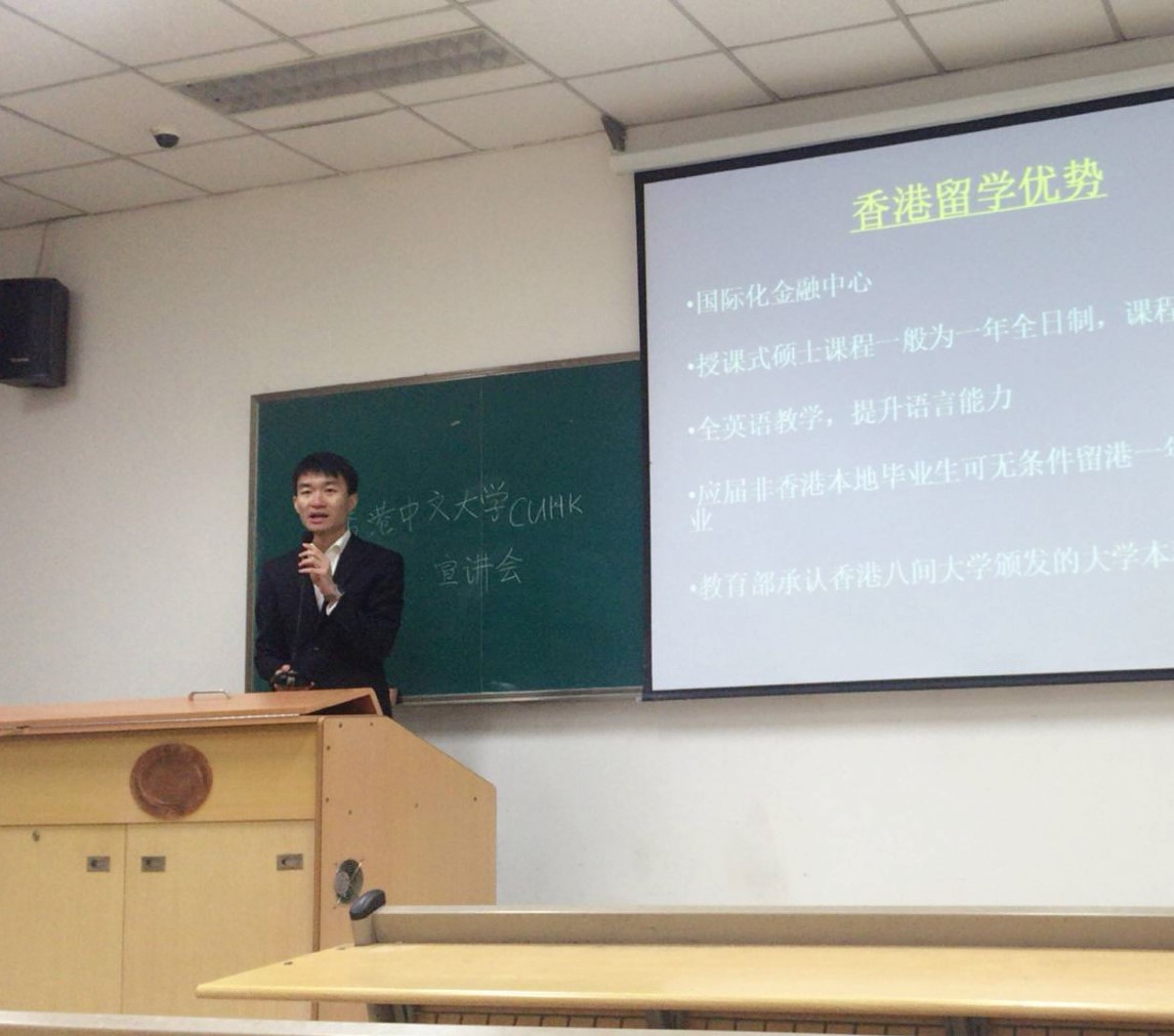 在宣讲会上,首先由课程助理为同学们讲解了有关房地产及旅游资产管理硕士课程的申请和课外活动。在课程申请方面,他提到课程的申请主要通过上各大公司的官网查资料,这个不仅对申请有帮助还对同学们参加面试有帮助;其次出国读硕士分为两类:研究型的硕士和授课型的硕士,前者的道路就是帮助导师做研究及将来留校等,后者主要是以找工作为导向,课程设置的目的是给同学们提供许多商业的培训和包装;另外就是课程的申请除了网上申请之外,还需要寄送相关的材料,其中特别提到成绩单一定是大学的教务处开具的;最后就是如果同学们有什么困惑,都可以通过电邮和电话的方式咨询。在课外活动方面,第一,会经常的安排大型的企业来公司做讲座;第二,公司会有一些自学课程供员工课外自学;第三,公司会专门给大陆员工开设粤语的课程;第四,在香港一年制的硕士公司是不安排住宿的,同学们需要自己去找房子,课程助理给大家介绍了一个有利于找房子的网站叫寄托论坛。第五,在各种节假日等会有许多丰富的课外活动,比如做甜品。