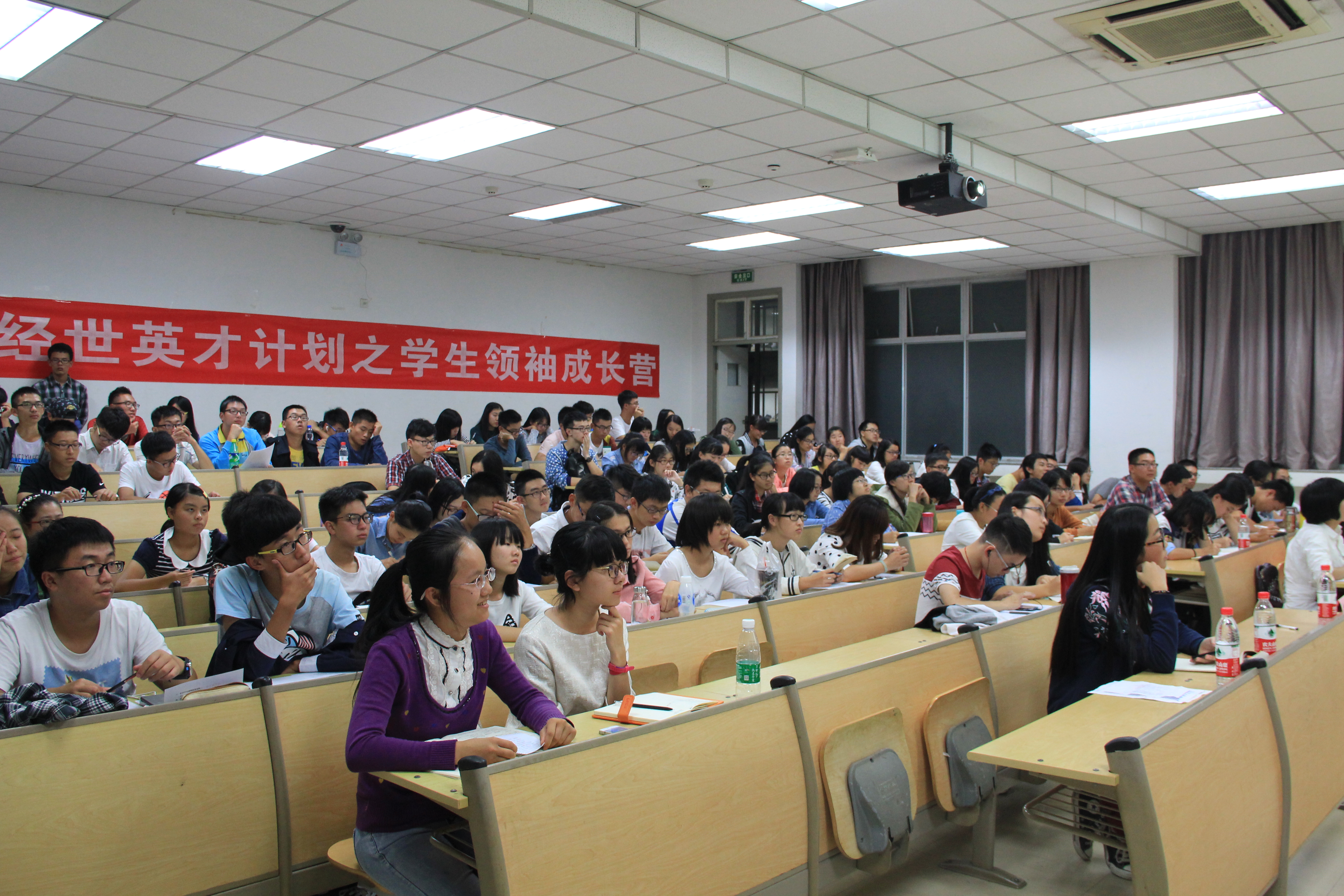 本网讯(通讯员 分团委员工会 邓豪)10月11日晚7点,学习习近平总书记系列重要讲话精神之“四进四信”主题宣讲会,暨3044永利集团“经世英才”员工领袖成长营第一期开营仪式在东九教学楼B303进行。本次活动特邀请到分团委员工会主席李晓和办公室主任石涵冰同学,分别就团学组织认知和员工会部门职能,做主题经验分享,本科15级新生们参加了本次活动。