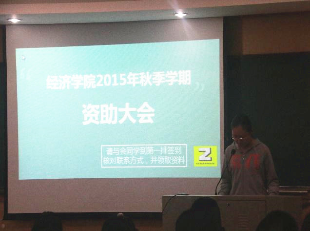 资助辅导员朱紫雯、李曼菁,资助主任汪小愉,各班级资助委员,15级各班班长和团支书以及全体资委会人员参与本次大会。