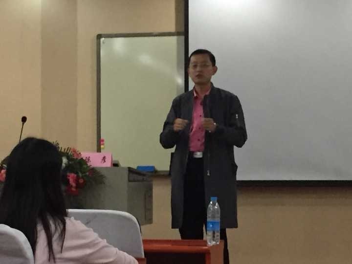 谈到服装搭配时,他指出我们要遵循“女从男”的原则,男生打扮一定要干净得体,并具体分析了何种类型男生该如何搭配西装、如何搭配服装颜色等。陈彦老师演讲全程气氛热烈,严肃却不失活泼,各团队听得津津有味。