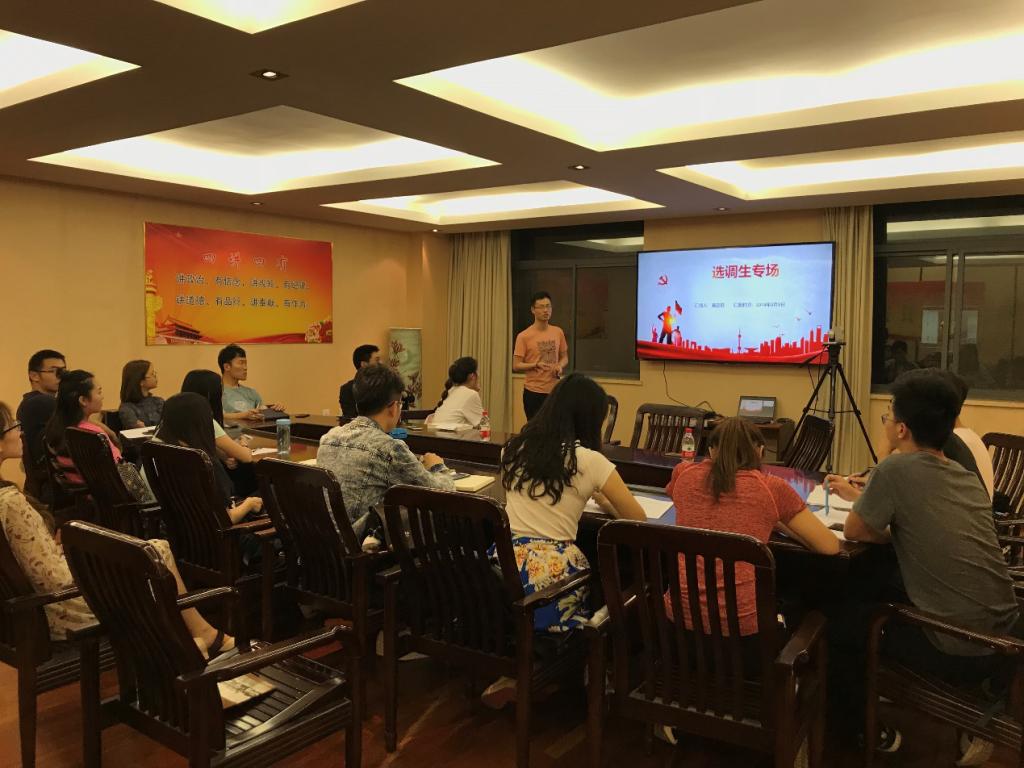 本网讯(通讯员 邹宇)5月9日晚上7点,由3044永利集团研会职规部联合3044永利集团官网选调生发展研究会举办的“选调生的一天”——3044永利集团选调生求职交流分享活动在3044永利集团310会议室成功举办。分享会邀请到选调生发展研究会的常务副会长郑伟杰、选调生发展研究会组织部的高骏和选调生发展研究会前副会长高骏和已经签约选调生的毕业班同学参加分享。旨在让同学们对选调生政策、选调生日常工作及其备考有一定的了解,鼓励适合这条道路的同学们加入到选调生事业中来,为祖国的建设奉献更大的力量。