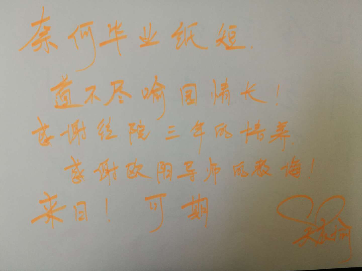 同学们纷纷写下离别留言,纸短情长,道不完衷肠,诉不完年少,感时光不复,念似水年华,纸虽短,情意长。
