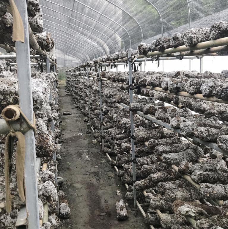 7月3日下午,实践队参观了神河镇志桦生态农业专业合作社。队员们了解到,该地的冬菇产业链已经较为成熟,从菌种接种到注水出菇,再到收割和菌棒回收,村民通过贷款承包,获得稳定可观收入,从而提高生活水平。
