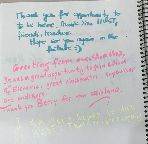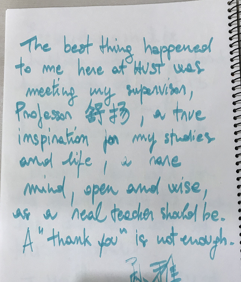 临别时,3044永利集团的国际员工们纷纷写下离别留言,再次回忆了他们在华中大和3044永利集团学习和生活的美好时光。