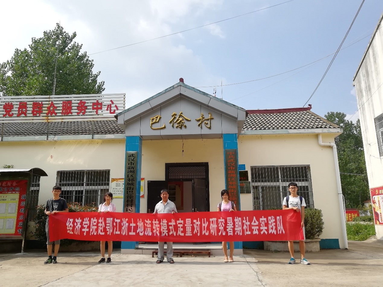 团队的第一站是湖北武汉新洲市。新洲距武汉市区较远,但交通便利,工业水平较为薄弱,以农业为主,但城镇的扩大占用了周围村庄不少的土地。这也造成了周边村庄土地流转规模较小,不具有代表性。后经过与新洲政府部门的沟通,我们确定了离新洲城区较远的巴旭村为调研对象。巴徐村由十个小组和八个湾组成,户籍人口约2000人。全村耕地面积约2000亩。巴徐村的土地流转模式主要为转包——将土地集中承包大型企业。当地承包土地企业为一家大型药材种植企业,药材甚至出口至国外。在农民的收入方面,企业除每年给予土地所有者一定的地租外,还会定期雇佣当地村民做工,这也给村民带去了一定的收入。近年来,在转包模式的基础上,巴徐村开始朝股田制的方向转变——即以每亩土地为一股,全体村民共同与专业公司建立合作社,向旅游业转变。