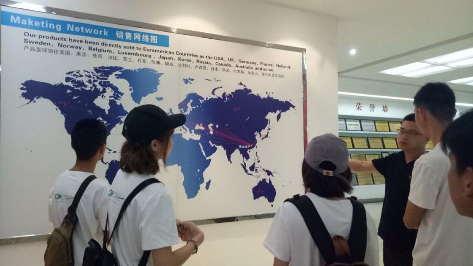 第二站,队员们来到了潜江市熊口镇。在熊口镇政府门口队员们见到了当地团委熊书记,以及副书记。他们亲切地了解了队员们的实践流程,随后把队员们带到了华山水产食品有限公司,这是位于熊口镇的一家淡水小龙虾、淡水鱼类等水产品的加工出口民营企业。在熊书记详尽的讲解中队员们不仅了解到该公司的发展历程、经营模式。不仅如此,队员们还了解到华山公司带动熊口镇赵脑村全体村民实现龙虾规模化养殖,和村民们共同富起来。一个村子从贫困到先进不仅需要政策的扶持,龙头企业的带动还要求村委会有强大的凝聚力以及战斗力。随后,队员们乘车来到了两万亩虾稻共作基地参观。