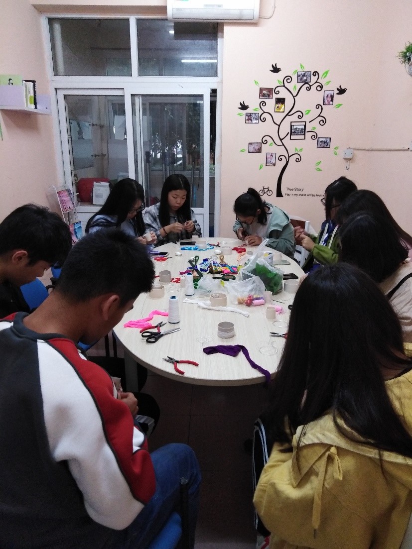 在此过程中,看似简单却又是那么精致,亦有苦有乐。在一次又一次的编织过程中,志愿者们的手开始酸痛,即便如此,同学们并未放弃,稍微活动一下手腕后就投入到制作丝网花的队伍中了。当看着一朵朵花瓣环绕着花蕊,同学们的爱心汇聚在一起;当经历过失败后,同学们体验到了成功的骄傲与自豪;当静心做自己喜欢的事时,同学们忘却了苦与累。简单的一次手工,志愿者们不仅学到了编织丝网花的技术,还奉献了自己的一份力量去帮助那些需要帮助的人。