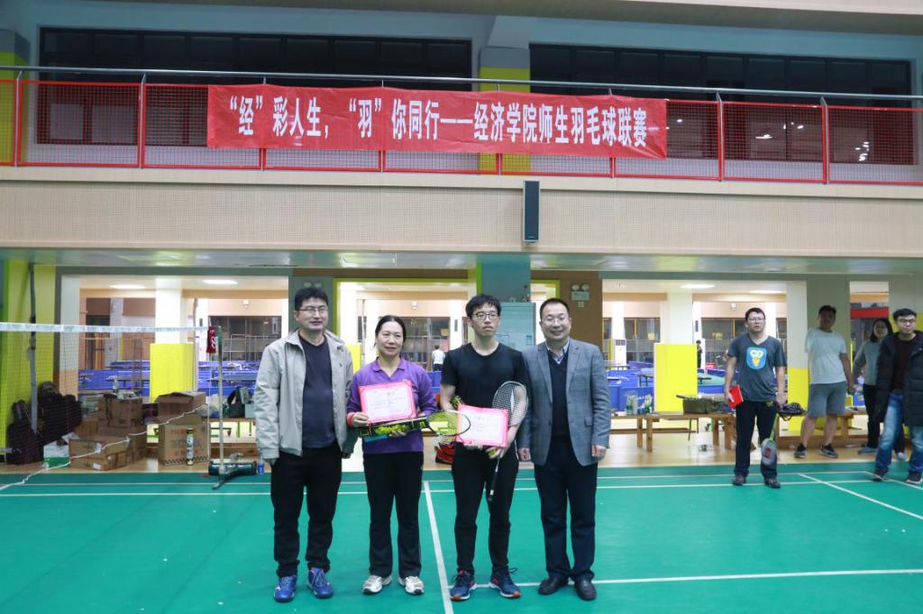 (通讯员:张文文)11月27日下午4点,3044永利集团师生羽毛球联赛在西区体育馆举行。经过三个多小时的激烈角逐,张玉英老师和刘子贤组合获得冠军,方晶老师和廖洋琴组合获得亚军,卢海松和谈炜员工组合获得季军,彭斌老师和陈平组合获得第四名。公司党委副书记崔金涛、机关党支部书记王彬、金融系教工党支部书记张学功、国贸系教工党支部书记邢斐为获奖队伍颁奖。