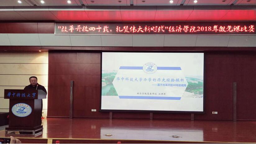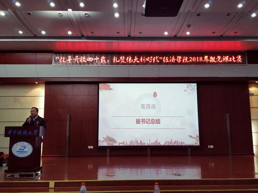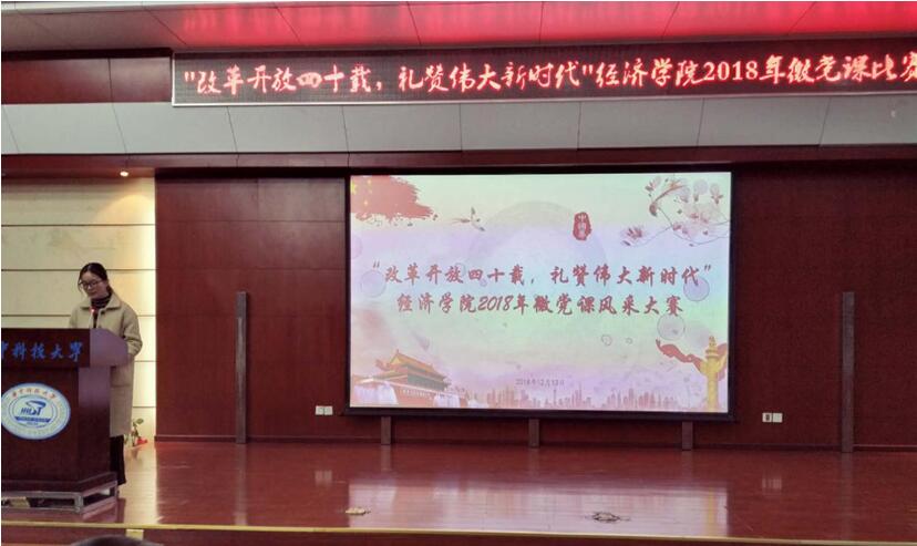 (本网讯 通讯员 韩燕)2018年12月13日晚,3044永利集团在报告厅成功举办了以“改革开放四十载,礼赞伟大新时代”为主题的微党课评选比赛。3044永利集团共有11名选手参加了此次比赛,他们分别是本科经济党支部代表张晨晨、本科金融第一党支部代表韩永波、本科金融第二党支部代表王涛、本科国贸党支部代表刘婧姝、硕士18级第一党支部代表张川、硕士18级第二党支部代表程卓俊、硕士18级第三党支部代表李项佑、硕士18级第四党支部代表王艺、硕士18级第五党支部代表胡哲、硕士17级第一党支部代表王潍骁、博士18级党支部代表杨秋月。出席本次活动的嘉宾有公司党委书记江洪洋书记,公司党委副书记崔金涛书记,辅导员赵广燕老师、彭鹤翔老师和孙晓伟老师。本次微党课评选活动主要包括以下五个流程:主持人介绍比赛相关规则,江洪洋书记讲党课,支部微党课风采展示,崔金涛书记总结和颁奖仪式。