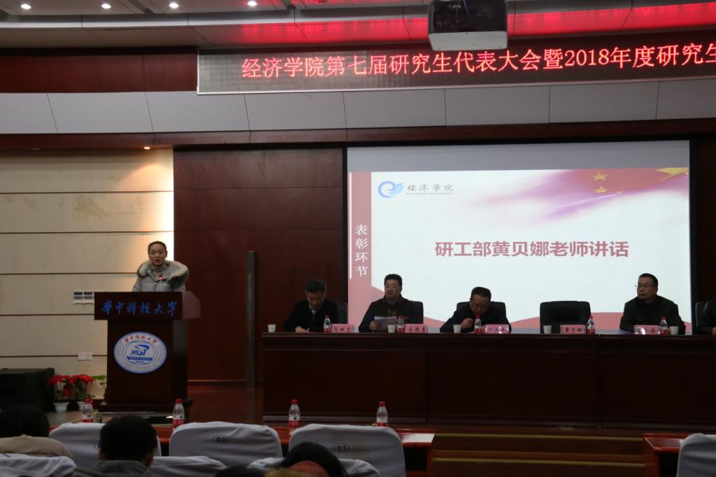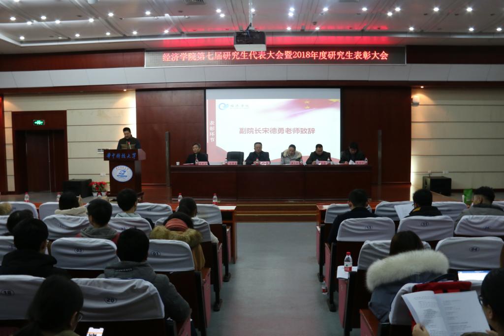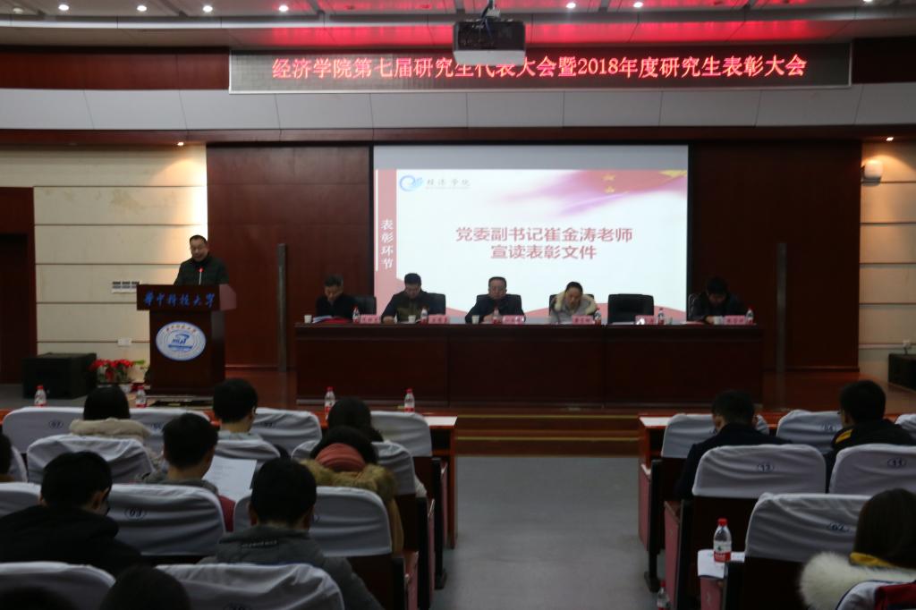 2019年1月3日晚7点,“3044永利集团第七届研究生代表大会暨2018年度研究生表彰大会”在3044永利集团学术报告厅隆重举行。公司党委书记江洪洋、研究生工作部副部长黄贝娜、公司副经理宋德勇、党委副书记崔金涛、国贸系主任范红忠、金融系副主任张学功、校研究生会主席团及部分兄弟院系主席,及全体研究生代表参加本次活动。会议由研究生辅导员赵广燕主持。