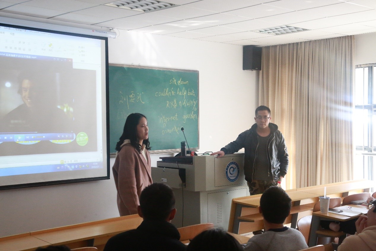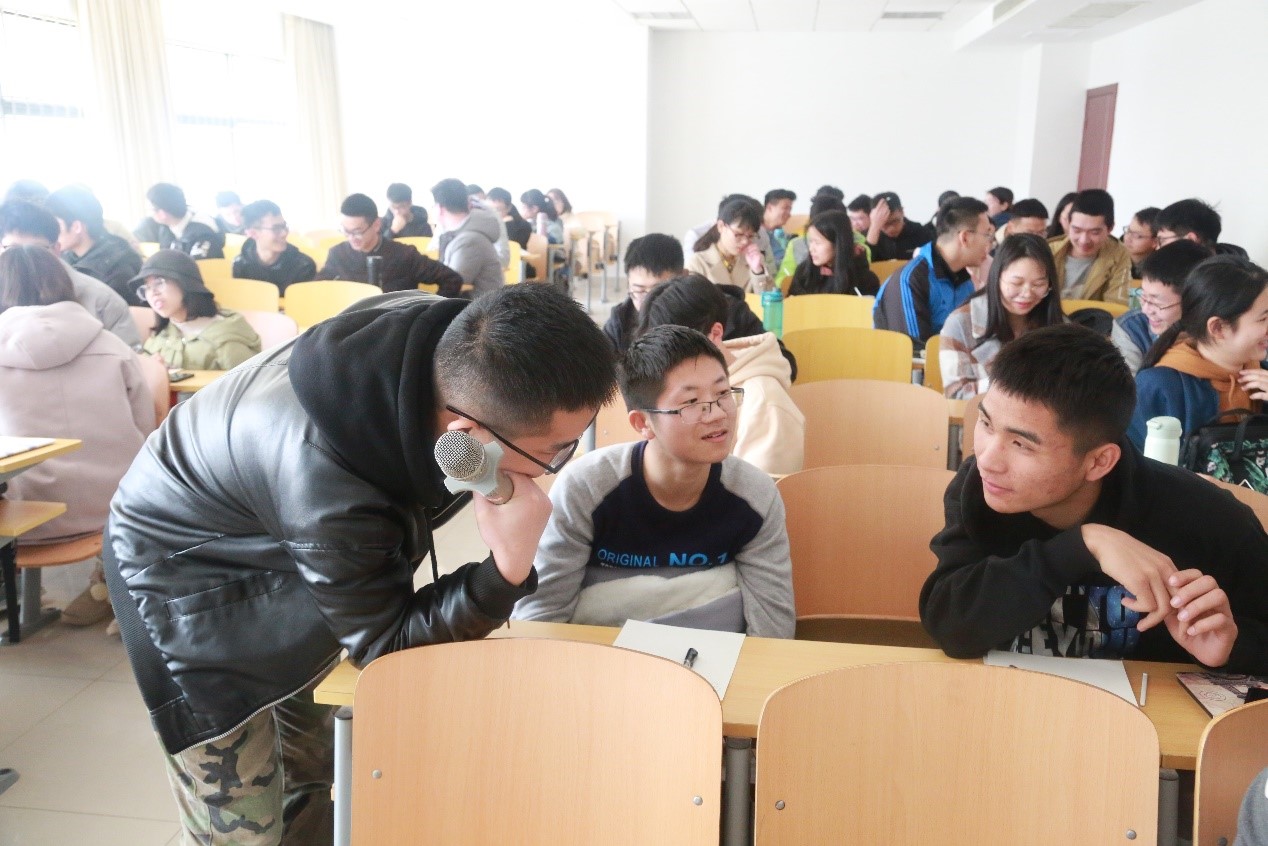 第二节课刘要武老师以日常生活中常见的话题主要授课内容,让同学们组队练习。刘要武老师也不时参与进同学们的练习,顿时教室活跃非凡。同学们的互动交流持续了较长时间后,刘要武老师开始向同学们讲解日常对话中所需要注意到的一些知识点,同学们表示收益匪浅。