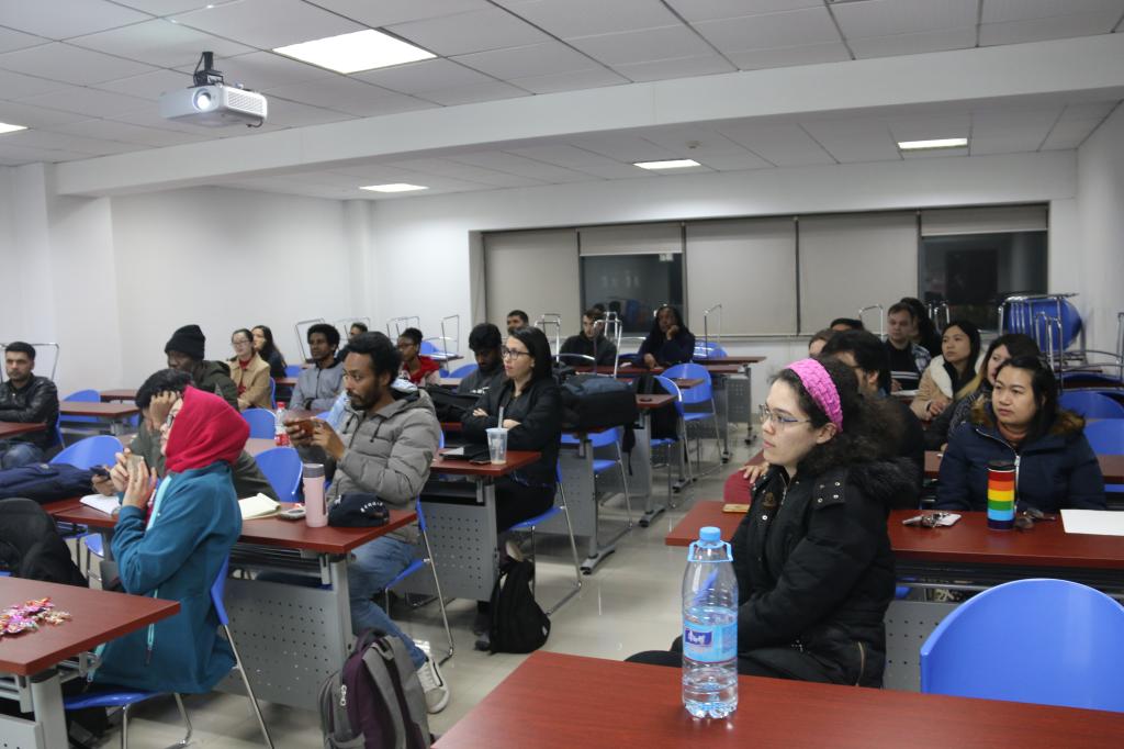 本次活动邀请了金融学16级博士柯韩(MUHAMMAD ASIF KHAN)和人口、资源与环境经济学16级博士莫煜(ELYAS ABDULAHI MOHAMUED)进行分享,分享的主题为“Experience sharing on getting your work published in SSCI: A motivational talk to raise your, and school academic rigor”。他们详细地介绍了自己的科研方法和心得体会,鼓励参与的国际员工平时多思考,多与导师沟通,多与他人合作,在学术探索中不要害怕,要多尝试。