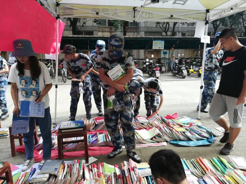 活动现场不仅吸引了大批新生,还有其他年级的员工过来物色书籍,更有学长学姐到活动现场进行捐书。此次活动从早上九点开始,一直持续到晚上七点。义工部的部员们顶着大太阳坚守在活动现场,累计发出图书千余册,活动成果斐然。活动回收了上一届学长学姐的旧书,将这些书籍送给下一届的同学,在减轻他们的经济负担的同时,也使资源得到了循环利用。