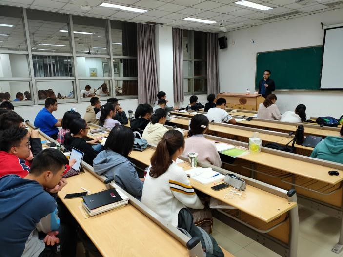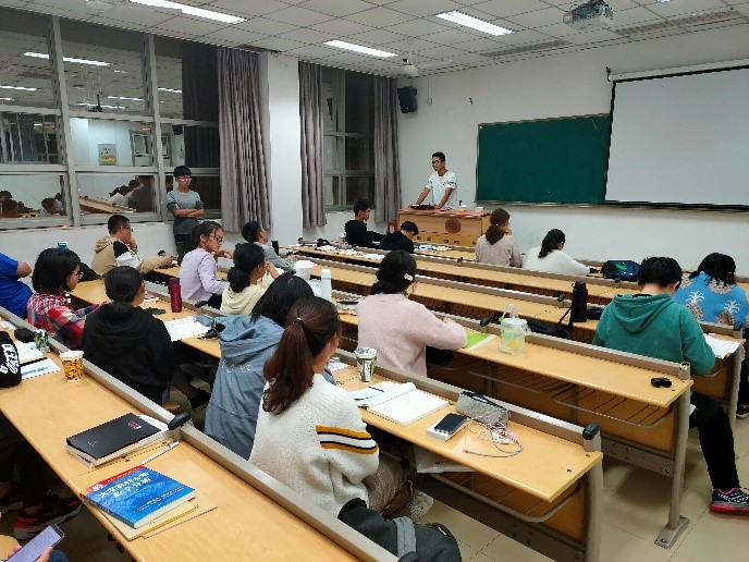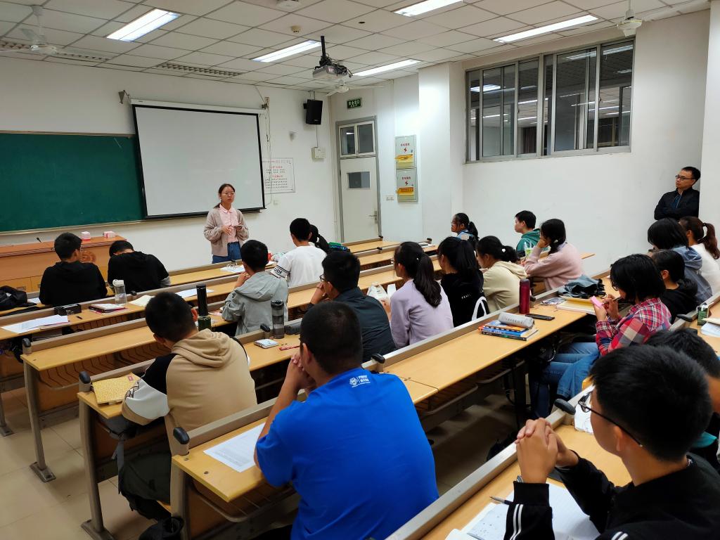 工作汇报完成之后,我们邀请班导上台分享一些对大学新生的建议。周记顺老师指出,新奇感和手忙脚乱是正常的,但是我们一定要立下目标,并且,只要我们初心是好的,就一定要坚持到底,并向我们分享了他自己的有关经验。随后,周记顺老师向我们提出三点要求,并解答了我们学习生活中的一些问题和疑惑。最后我们欢送班导离场。
