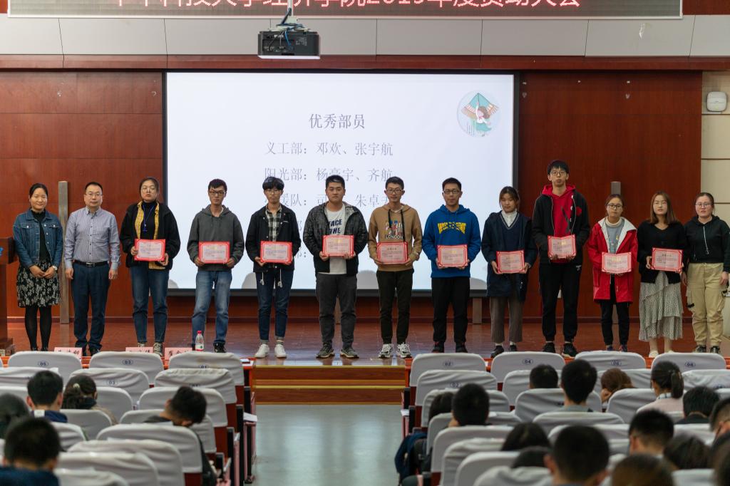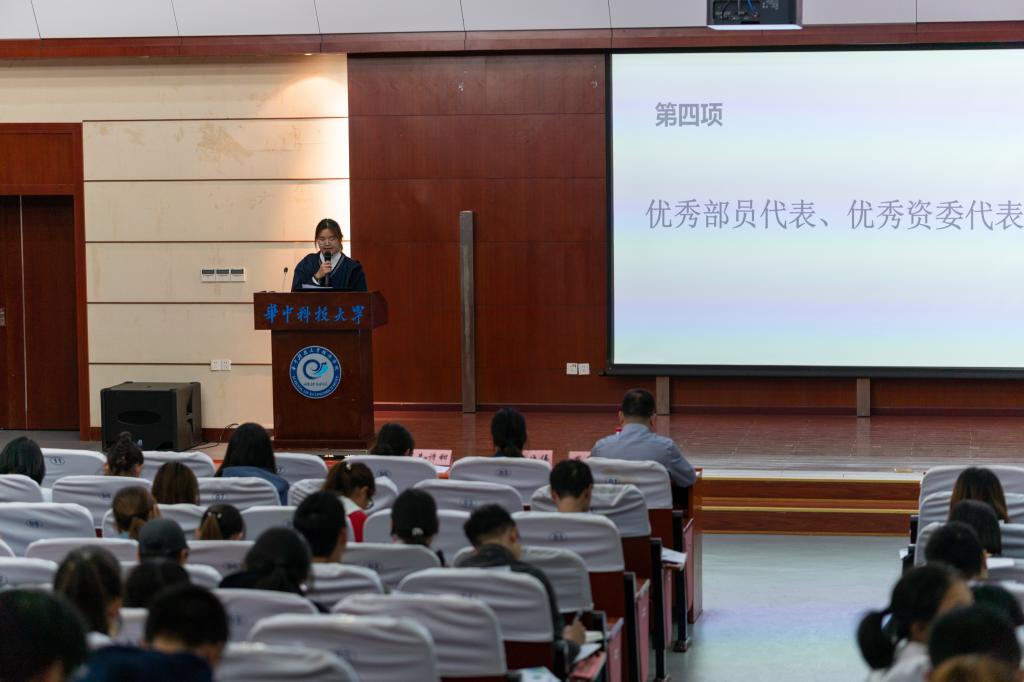 主持人宣读优秀部员、优秀班级资委名单,崔金涛书记、辅导员孙晓伟、朱诗甜为受表彰员工颁奖并合影留念。优秀部员齐航阐述了加入资委会的心得体会:她认为资委会帮助她成长,并使她的责任感与使命感得到提升。她指出,面对部门工作,部员们应该做好工作学习的平衡。优秀班级资委袁璐鼓励资助委员积极帮助同学全面深入了解资助政策,同时需要将资助的关爱传递出去。她强调了资助委员的事务处理能力,要对工作有责任感,对同学有同理心。
