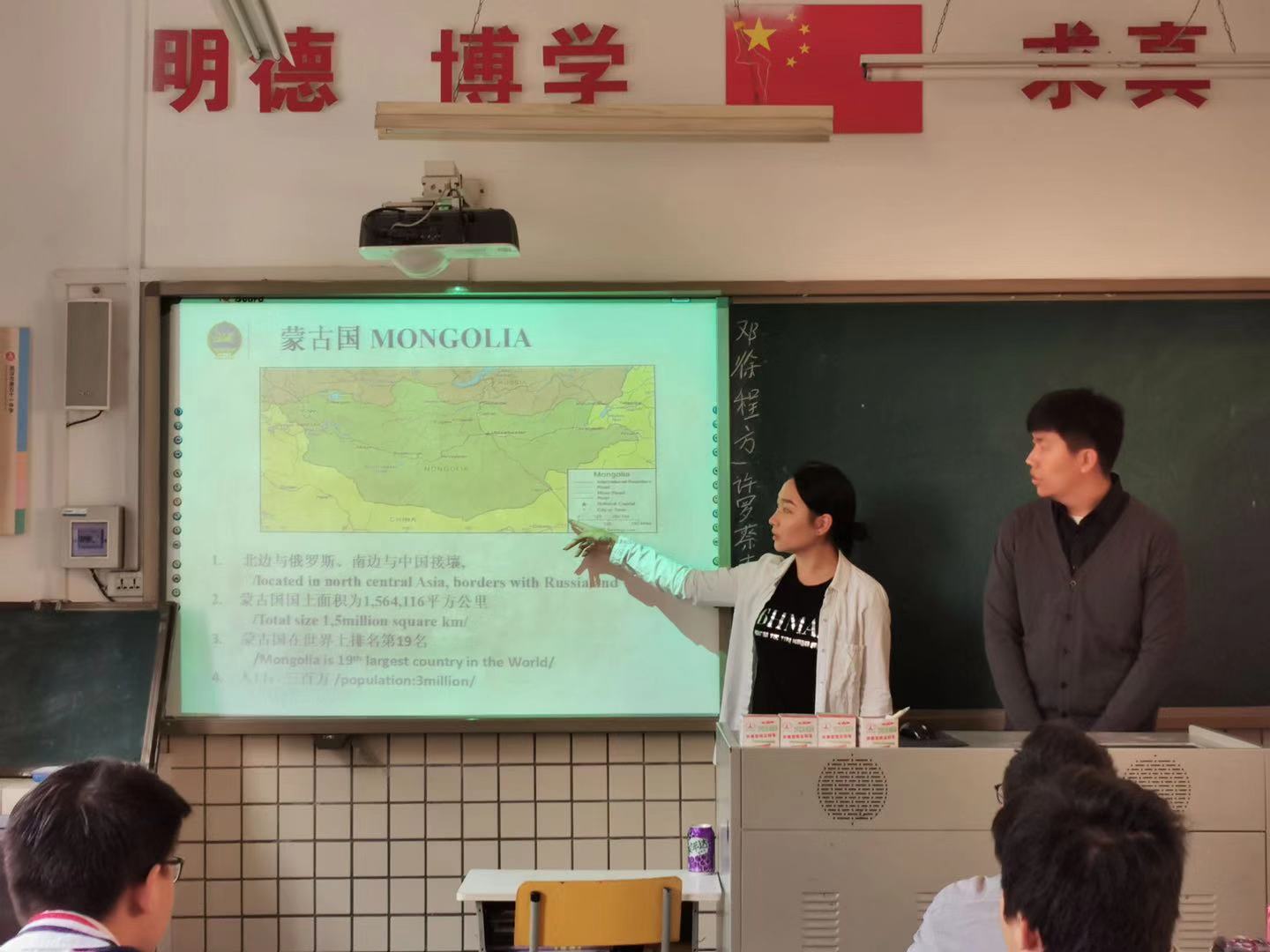 首先,来自蒙古的恩和玛与安克白为大家介绍了蒙古国的地理位置、国土面积、传统文化等方面的内容,其中,蒙古人的打招呼方式时引发了大家的兴趣。随后,来自厄瓜多尔的谢丽丝详细讲解了自己国家的位置、民族、气候、人口等,并积极与同学们互动,她还邀请同学们观看了厄瓜多尔一年四季的视频,帮助大家开拓了视野。三位国际员工志愿者讲解的同时,志愿者孙颖慧与王天瑞为员工们进行翻译,帮助同学们更好地理解职工志愿者展示的内容,活动氛围十分活跃。