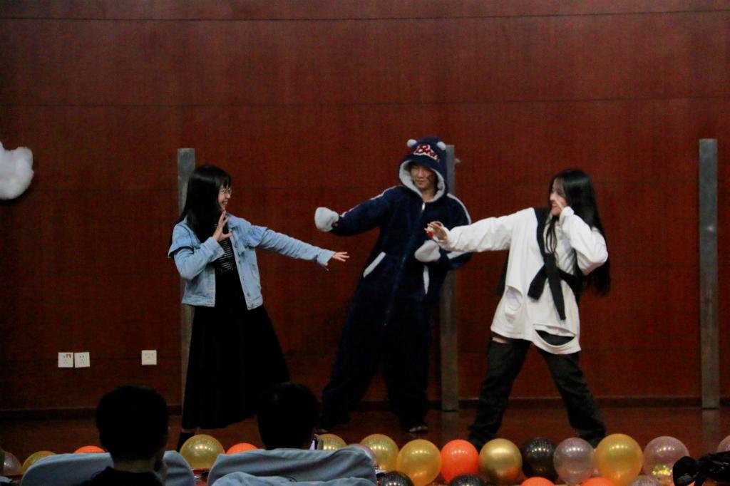 晚会开始,心理服务部部员倾情演唱的歌曲《纪念》搭配上暖心动人的视频,奠定了整场晚会温馨的基调。文化部的歌舞内容多元丰富,融合合唱、街舞、说唱,充分展现了部员们多才多艺、时尚热情的风采。体育部的小品《社会人》幽默风趣,赢得了观众的阵阵掌声。创意设计工作室利用剪影演绎了一组诙谐的影子戏,别出心裁引人入胜。科技创新部的舞蹈活力四射,与现场观众的互动更是将晚会的氛围推向了高潮。