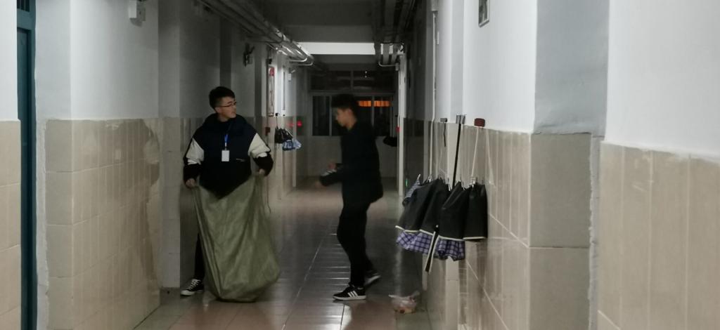 晚上九时三十分,十八位志愿者与三位负责人准时在宿舍楼栋下集合。在负责人讲解注意事项,分发工作证后同学们便出发去各自所负责的楼层搜集矿泉水瓶与废旧书籍。同学们顺着每一个宿舍礼貌、耐心地询问,也得到了同学们的积极响应,更有已熟悉爱心宿舍的同学早早地准备好了矿泉水瓶与废旧书籍等待收集。时值初冬,纵使天气寒冷,也未削减同学们对于活动的热情,爱心宿舍活动有条不紊地进行着,温暖在一点点传递。
