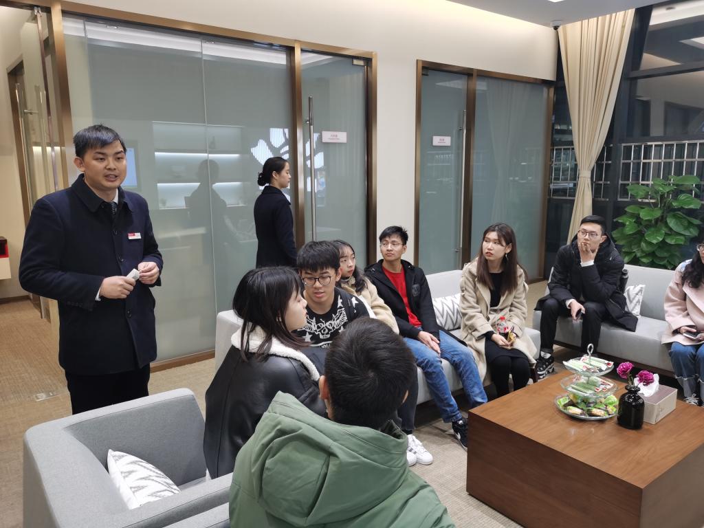 在交流讨论环节,同学们积极向支行行长和经理提问,重点询问了招行总行和分行的招聘情况,并就自己的职业发展意愿和发展规划与专业人士进行了交流。支行行长也就支行所处环境为大家讲解网点的对公业务情况,分析了网点的区位优势,由于地处高科技产业区,支行拥有丰富且庞大的业务市场和广阔的业务发展空间。最后,行长表示,招行非常欢迎华科同学前来实习,也欢迎同学们未来到招行工作。