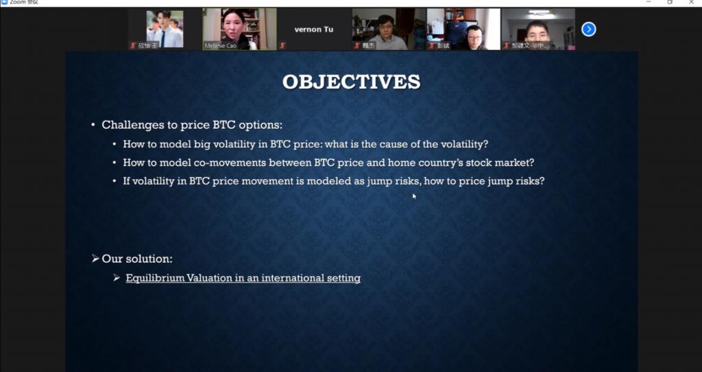本网讯(通讯员:王欣怡)2020年11月20日星期五上午10点,2020年第四次学术讲座于ZOOM线上会议顺利展开,本次会议的主讲人为加拿大约克大学Schulich商公司教授操敏(Melanie Cao),会议主题围绕操敏教授的最新研究,一个关于比特币期权的均衡估值模型而展开。