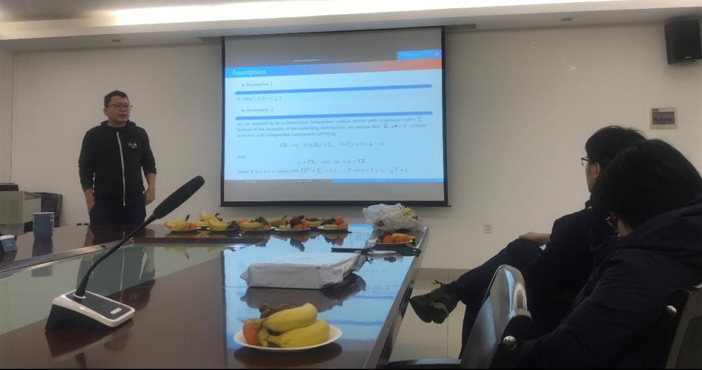 彭斌老师首先介绍了这篇论文的主要研究内容:论文主要是提出了一种检验股票市场上大相关资产的异常收益和累计异常收益的新检验方法。通过进行一定的研究,结果表明新的检验方法对于非正态性、(条件)异方差和未知截面相关性具有稳健性,同时通过蒙特卡洛仿真实验,得出了在不同场景下该检验方法比其他方法具有更好功效的结论。彭斌老师指出论文最后还通过2016年特朗普大选的实例对异常收益进行了检验,研究结果也表明新检验方法更加具有有效性。