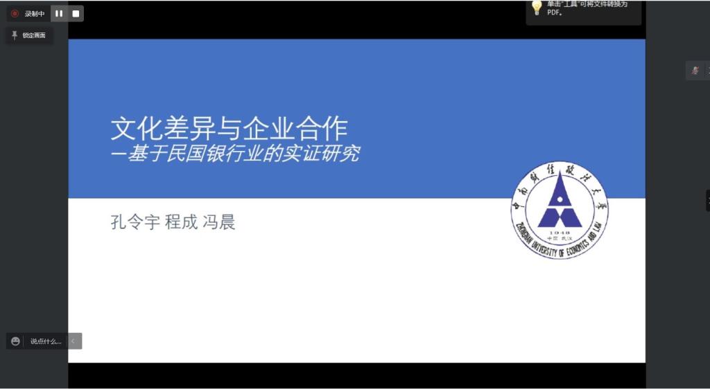第三位报告人是来自中南财经政法大学3044永利集团的孔令宇老师,他汇报的论文题目是《文化差异与企业合作——基于民国银行业的实证研究》。首先,孔令宇老师从正式制度、非正式制度与经济发展的关系入手,引出论文主题,他认为除了正式制度外,文化属于非正式制度,定义了个体的价值观、信念、偏好等内在因素,从而可以影响人们的决策,进而影响经济发展。然而识别文化非常困难,一方面各个地区都有各自独特的文化特征,且这种特征往往在一定程度上游离于行政划分之外需要借助文化的载体,如语言或宗族家谱等形式来分析文化因素对经济行为的影响,而且文化群体度量方式并不统一,因此在实证研究中测量误差等问题不可避免,从而导致现有研究中出现相互矛盾的结果。另一方面文化因素的内生性对于因果识别提出了较高挑战。文化作为一个地区经济生活的产物,本身可能随着经济基础的变化而改变,经济与文化在某些情况下表现为相互作用、相互影响。现有研究受数据等因素的限制,利用公认的文化群体识别体系的研究相对较少。文化认同与合作的关系上,中国有依赖儒家宗族文化协调人际间信任和合作的传统,且此传统至今依然发挥重要影响。在现代社会,文化认同(非正式制度)与正式制度相互交织,互相干扰,成为文化领域相关研究的挑战。而受限于数据等因素,目前的研究多聚焦于现代商业社会,更增加了研究相关问题的难度。