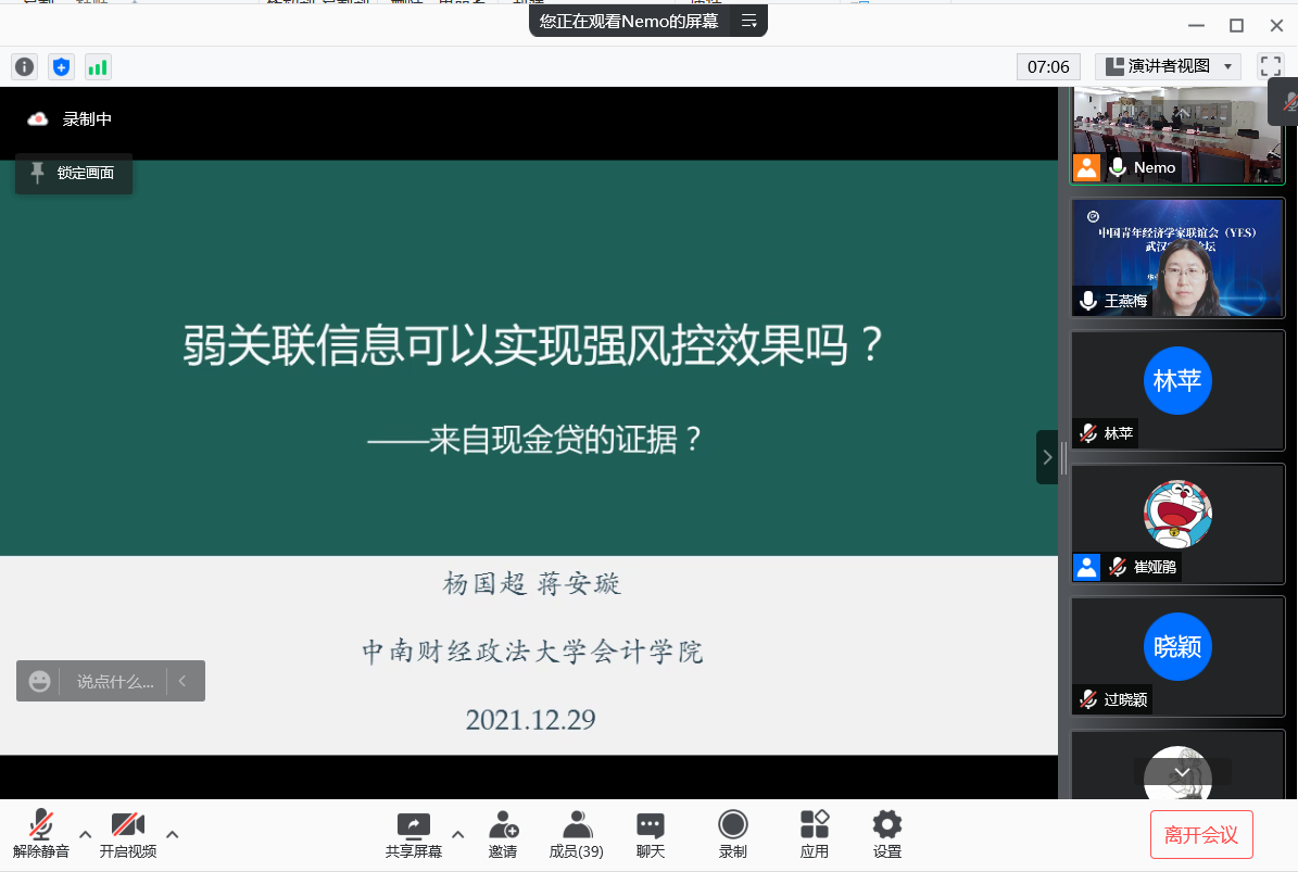 至此,2021年“中国青年经济学家联谊会(YES)武汉”平行论坛(二)下午场结束。
