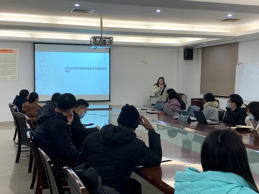 第二位汇报人是任倩同学,她的论文题目是《税收成本对中国制造业资本外流的影响研究》,文章基于双边税收协定异质性的视角,聚焦制造业OFDI,重点关注因成本变化带来的被动性资本外流。在实证分析方面,文章加入交互项考虑内在作用机理,并进行了稳健性检验、内生性检验和异质性检验,结果表明:总体来看,税收成本对成本变化原因所引起的被动的“避害型”海外资本转移影响更为明显;直接成本的显著变动和大幅度提升是促使中国境内制造业企业资本被迫向境外大量转移的直接及主要原因。